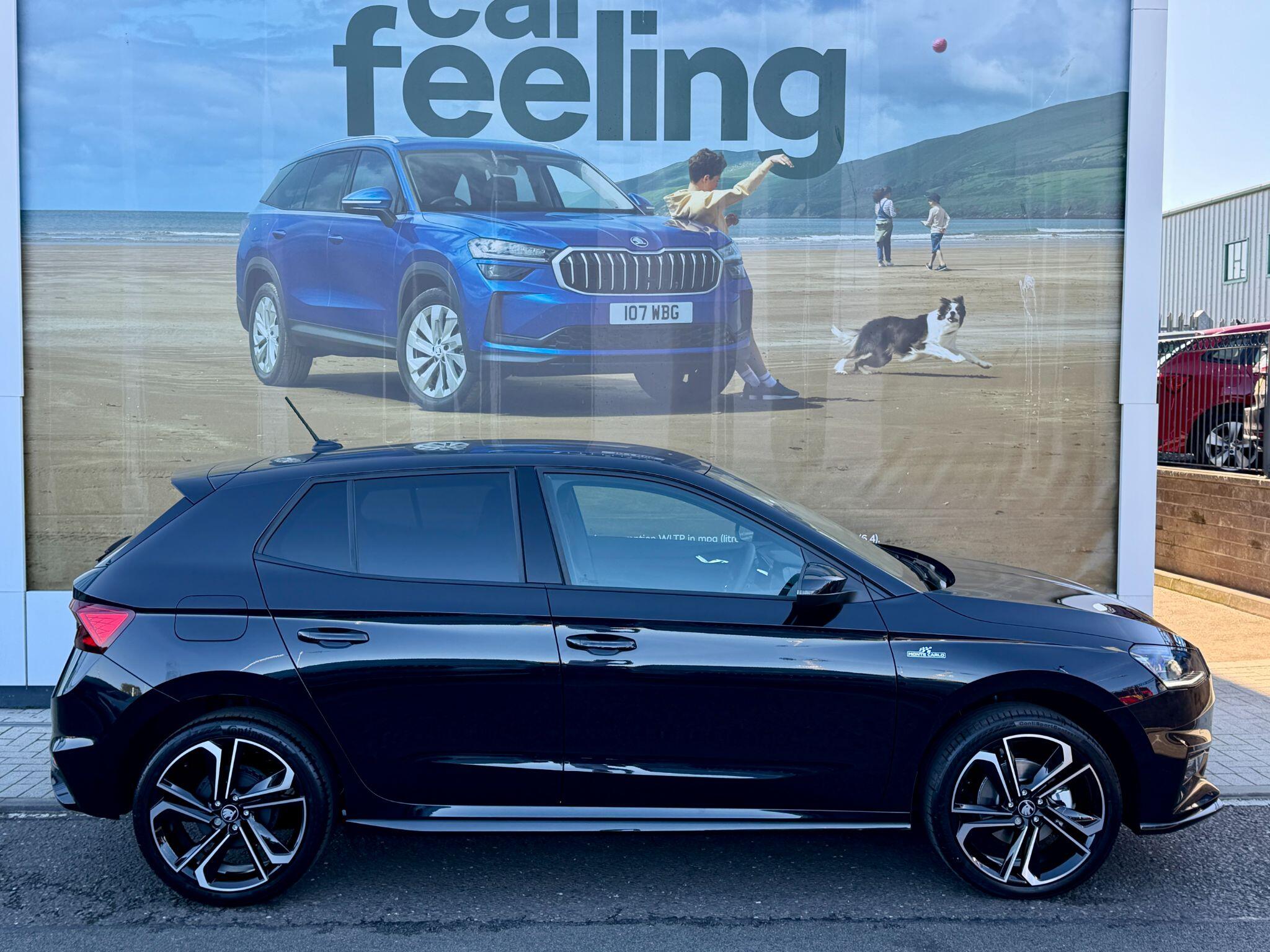 This stunning Skoda Fabia Monte Carlo Edition, finished in Black Magic Metallic, is the perfect blend of sporty style, everyday practicality, and trusted Skoda reliability. The car looks absolutely incredible with the optional 18'' Libra alloy wheels, giving it a striking road presence that really sets it apart.Powered by the smooth and efficient 1.0 TSI engine paired with the DSG automatic gearbox, the Fabia delivers a confident and refined driving experience, with low running costs and excellent fuel economy. The Monte Carlo specification brings a dynamic edge with sporty exterior styling, black design accents, panoramic glass roof, and a premium cabin that’s both modern and comfortable.This example also benefits from the Winter Package Premium, adding heated front seats, heated washer nozzles, and advanced comfort features to make every journey easier in colder conditions. Inside, you’ll find supportive sports seats, digital cockpit display, smartphone integration, and a high-quality infotainment system, keeping you connected and entertained on the go.Safety is a top priority, with features such as Front Assist with City Emergency Braking, Lane Assist, multiple airbags, ISOFIX child seat points, and advanced stability control systems all included as standard. Skoda’s well-earned reputation for reliability and practicality makes the Fabia an ideal choice for both families and individuals seeking peace of mind.If you’re looking for a brand-new hatchback that combines head-turning looks, cutting-edge technology, and outstanding safety in one stylish package, this Skoda Fabia Monte Carlo DSG is not to be missed.