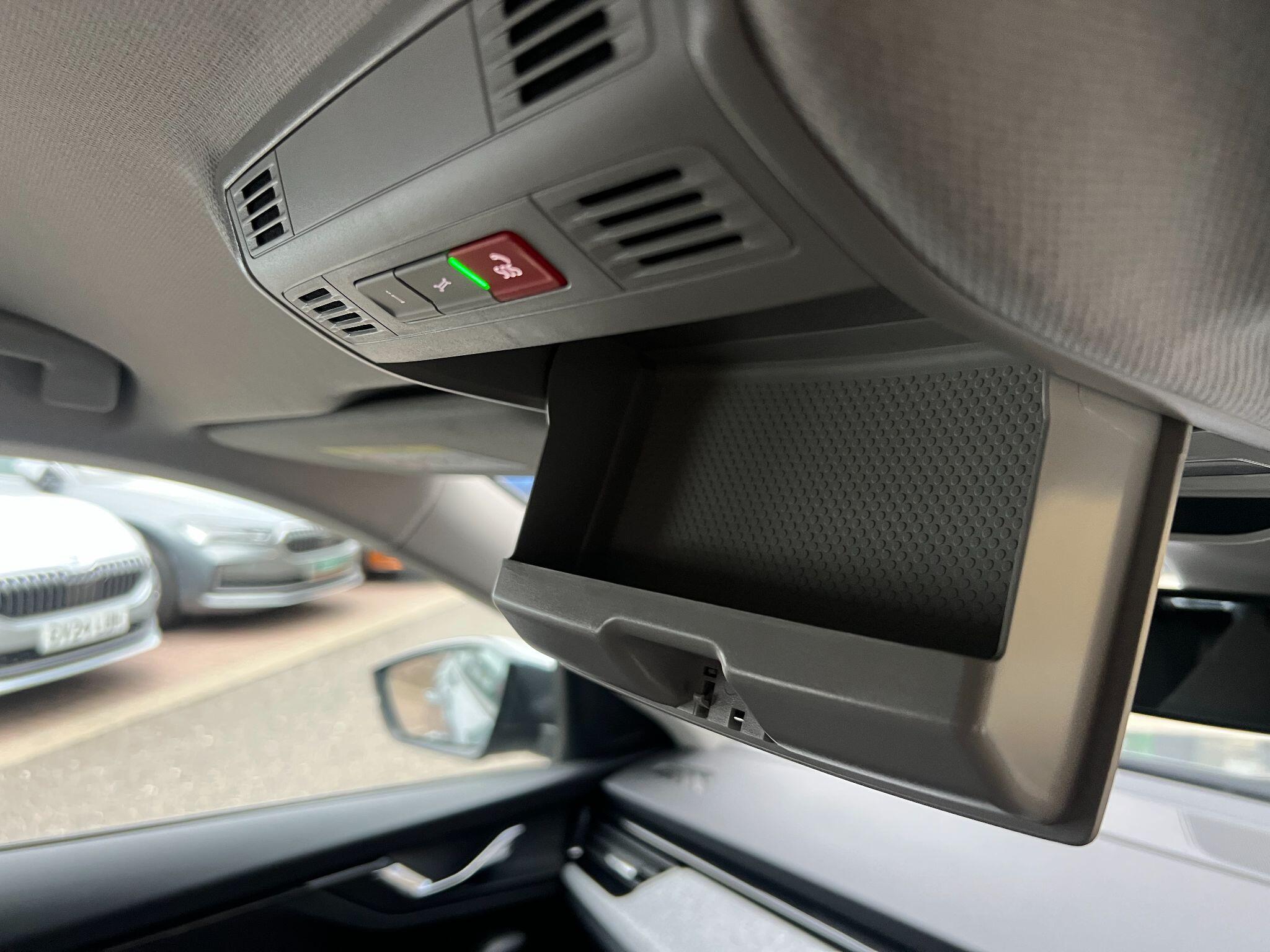 - Overhead glasses storage compartment